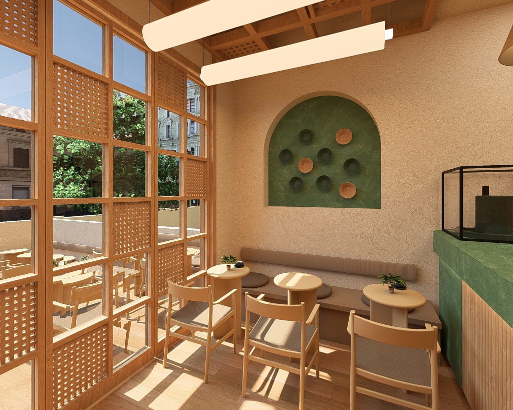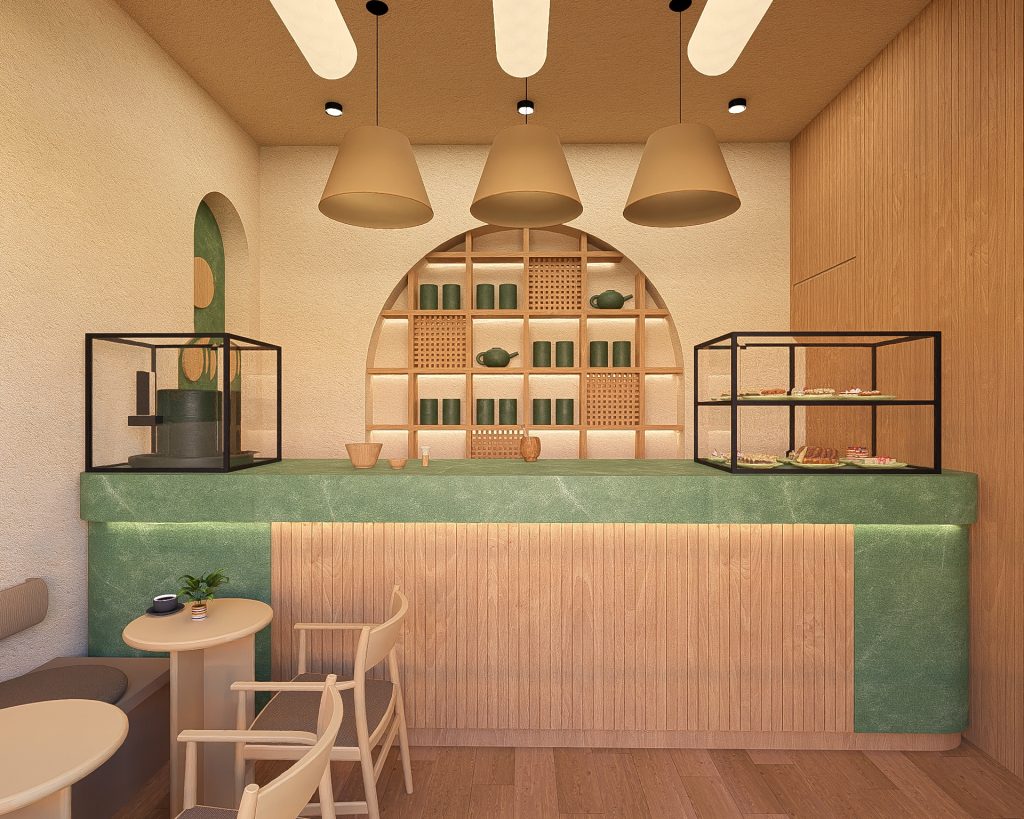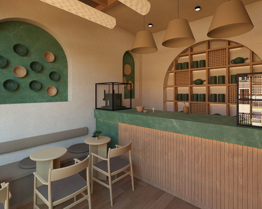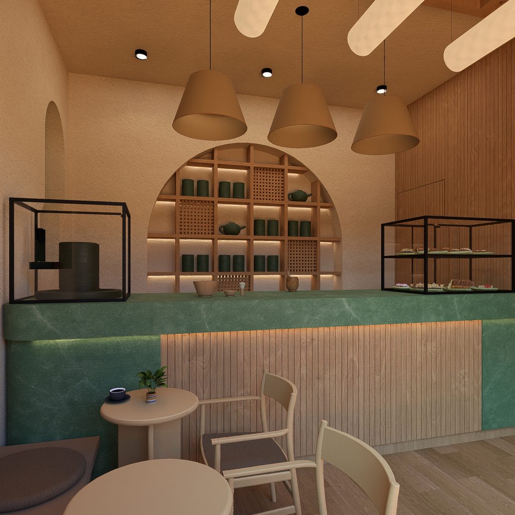- Yeşil Mermerin Doğal Karakteri: Mekanın omurgasını oluşturan yeşil mermer, sadece bir yüzey değil, matchanın doğuşunu simgeleyen monolitik bir öğedir. Mermerin doğal damarları, mekanın içinde birer organik nehir gibi akar; pürüzsüz dokusu ise kaliteyi ve kalıcılığı temsil eder. Mermer, dingin bir lüks algısı yaratır.