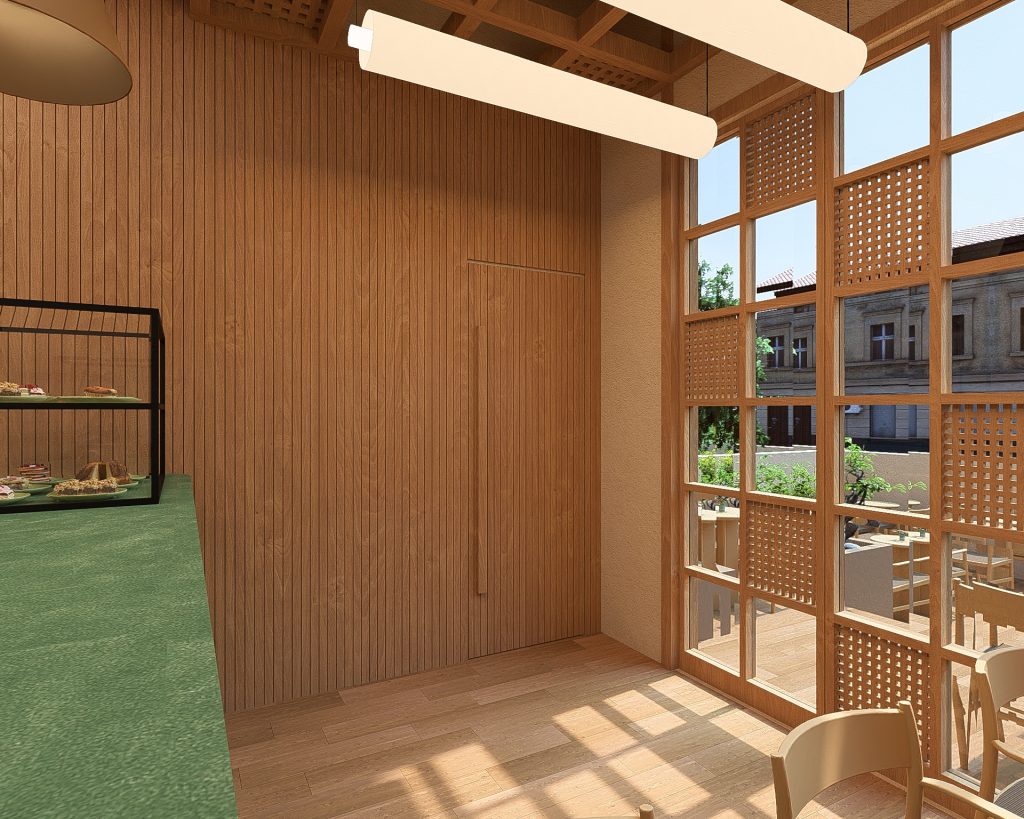 - Ahşap ile Kurulan Sıcak Temas: Mermerin ağır ve serin duruşu, geniş yüzeylerde kullanılan doğal ahşap ile dengelenmiştir. Ahşabın sunduğu lineer formlar, mekanda ritmik bir düzen oluştururken ziyaretçilere konforlu bir “evde hissetme” deneyimi sunar ve duyusal bir sıcaklık katar.