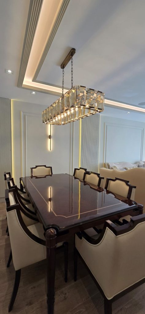 Geniş ve ferah salon, gün ışığından maksimum fayda sağlayacak şekilde konumlandırılmıştır. Açık renk paleti, modern mobilyalar ve yalın tasarım öğeleriyle zamansız bir şıklık sunar. Aile bireylerinin birlikte vakit geçireceği bu alan, hem dinlenme hem de misafir ağırlama işlevini başarılı bir şekilde yerine getirir.
